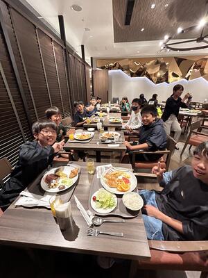 少し早めにホテルにつきました。部屋でそれぞれ休んだ後、夕食をとりました。みんな元気です。明日の準備をして、休みます。