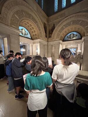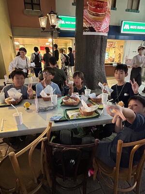 グループ活動を終えて、時間通りに鶴岡八幡宮に集合しました。階段をのぼり、お参りをして、鎌倉を後にしました。ホテルへ向かいます。