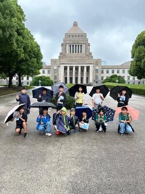 東京は、雨の朝となりました。子どもたちは、みんな元気です。ホテルを早めに出て、国会議事堂を見学しました。