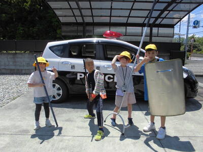 不審者が学校内に侵入したという想定で、避難訓練を行いました。子どもたちを避難させる・侵入者に対応する・緊急連絡をするなど、矢板警察署の方のご指導を受けながら訓練にあたりました。また、子どもたちが「いかのおすし」のお話を聞いたり、教職員がさすまたの使い方を学んだりしました。今後の学校安全のために生かしていきたいと思います。