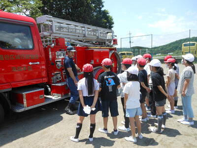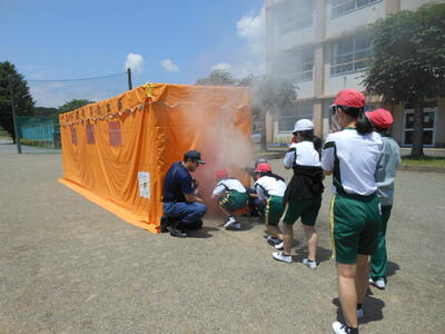 矢板消防署の方々に来ていただき、3校時に避難訓練を行いました。震度5の地震が発生し、その後火災がおきたという想定でした。子どもたちは、指示に従って身の安全を守り、整然と避難することができました。消防署の方からのお話を聞いた後、煙体験と消防車両の見学をしました。自分の命は、自分で守ることができるように、今後も意識を高めていきたいと思います。