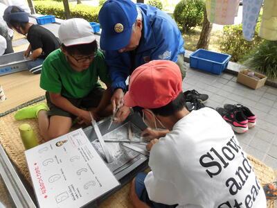 5年生が、総合的な学習の時間に大江川の生き物調査をしました。川に住む生き物を指標にして、大江川の水質を調べます。水の郷泉を守る会やコミュニティ・スクールの方々にお手伝いいただき、また、市の環境課の方からいろいろ教えていただきました。身近な川の様子を知って、環境保全に関心を高めてほしいと思います。