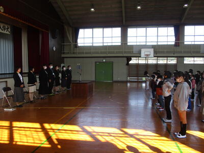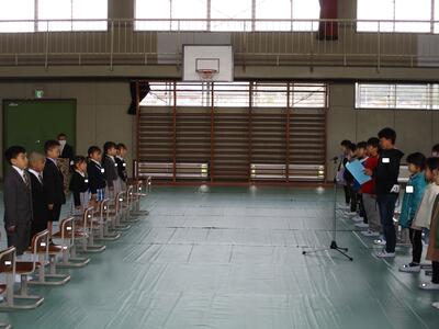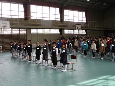 3月24日(金)、修了式を行いました。代表者を多目的室に集め、他の児童は