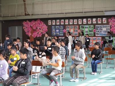 児童会が中心となって、「あいさつ運動」を展開しています。朝、昇降口前で全校生にあいさつの声掛けをしています。これからあいさつの輪が、学校全体に広がっていくことでしょう。