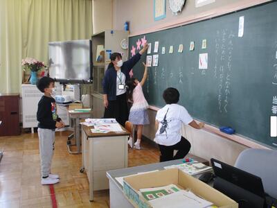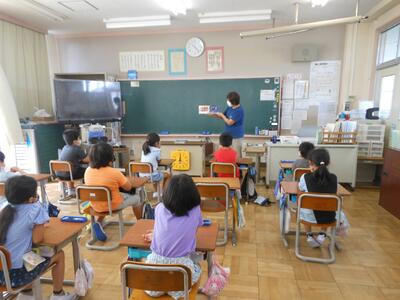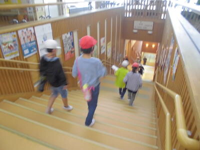 1年生が、生活科の学習で「がっこうたんけん」をしました。2年生が、案内役となり、校内のいろいろな教室を見て回りました。教室との違いを見つけたり、泉小の7つの宝を探したり、楽しく活動しました。