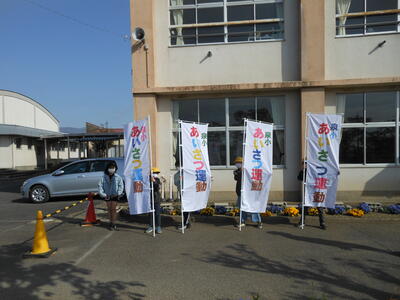 指導員の方々が来校し、あいさつ運動をしてくださいました。