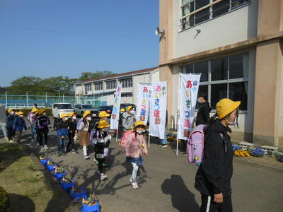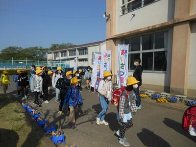 各教室で宿題などを確認した後、市の少年指導員の方々の見守りを受けて、子どもたちは、元気に下校していきました。