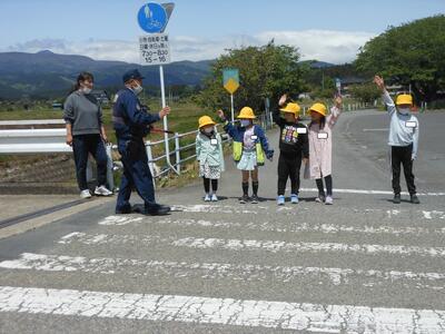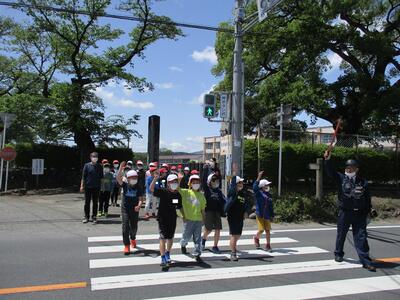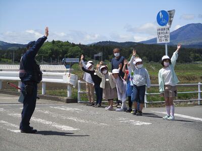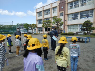 1、2年生が3校時に、3、4年生が4校時に、交通安全教室を行いました。泉駐在所の警察官から、横断歩道を渡る時や道路を歩く時の注意点や安全確認の仕方についてご指導いただきました。交通事故に絶対に合わないことをみんなで誓いました。いつでも・どこでもしっかりと実践していてほしいと思います。