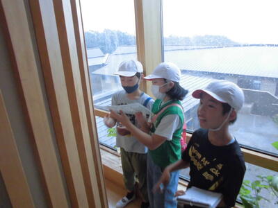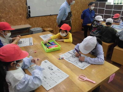の中にある標識やポスト、建物など、いろいろな物を見つけました。保護者の方々に活動の見守