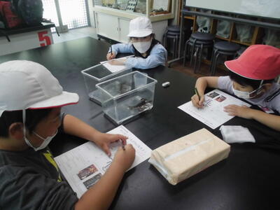 5年生が、ミヤコタナゴについて学習しました。始めに県の水産試験場の方から体の作りや産卵の様子などについて話を聞きました。その後、生息池に出かけて、実際に観察したり、まわりの環境を調べたりしました。ふるさとの環境を守ることが、ミヤコタナゴを守ることだと学ぶことができました。