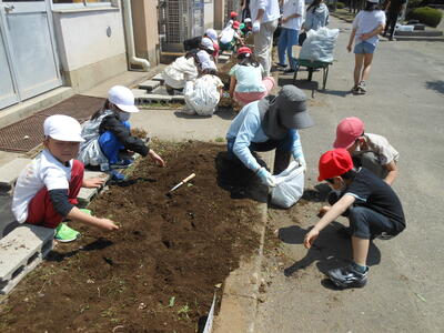 に、チューリップの球根植えと除草活動をしました。今日は、2年生と5