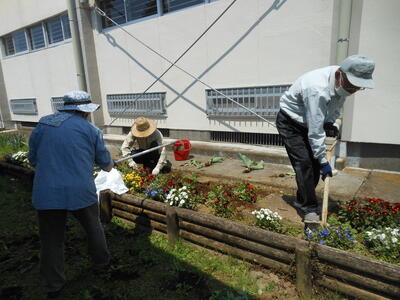 今日のふれあいタイムは、除草活動(花壇整備)でした。8つのなかよし班(縦割り班)で、分担された花壇を整備しました。泉小コミュニティースクールの方々のお手伝いを受けて、夏の花壇を作るための準備が整いました。コミュニティースクールの方々には、調理室の清掃もお願いしました。今後も継続して作業をお手伝いいただきます。たいへんお世話になります。
