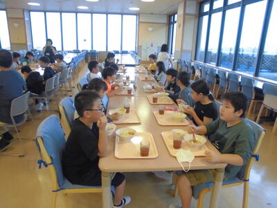 朝、オンラインで学校長からの話を聞き、その後、教室で休み中の課題を提出したり休み中の出来事を話したりしました。暑さを少しでも和らげようと昇降口にミストシャワーを設置。少しでも涼しい気分になれたらいいですね。体調管理に気を付けて、楽しい学校生活をおくってほしいと思います。