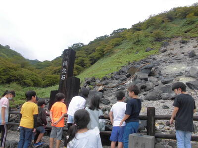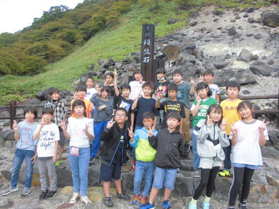 4年生が、校外学習で「なす高原自然の家」に出かけました。あいにくの天気で、オリエンテーリングを館内で実施しました。午後には、雨の合間を縫って、殺生石を見学。みんなで協力し合って楽しい活動となりました。