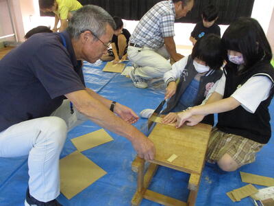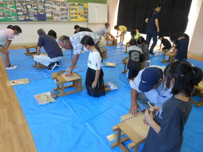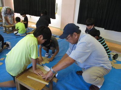 4年生が、図画工作科の時間に、のこぎりを使った制作活動を行いました。コミュニティ・スクールの方からの授業支援を受けて、のこぎりを効率よく安全に使うことができました。全員が目標を達成することができ、大満足の学習となりました。
