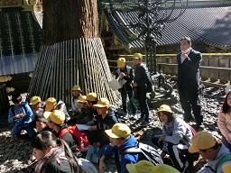 係の子が一生懸命説明しています。この眠り猫がいるのが「坂下門」です。