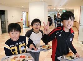 ちゃんと配膳が終わりました。「手を合わせてください。いただきます。」