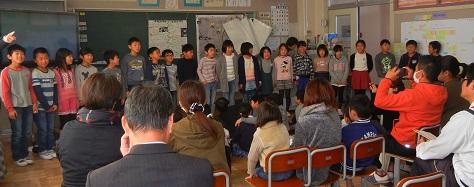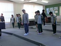 見ていた3年生が感想を言います。発表態度のこと、お年寄りの施設の訪問のこと。