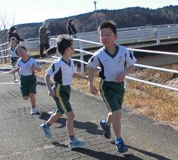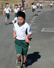 中学年も高学年も続いて走って行きます。