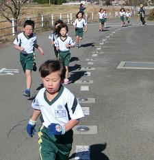 そのまま校庭を走ります。体を温めます。