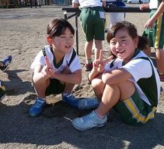 1年生男子3位でゴール。2年女子2位でゴール。