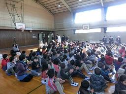 これから2年生の発表が始まります。拍手をしている1年生です。