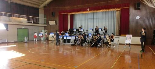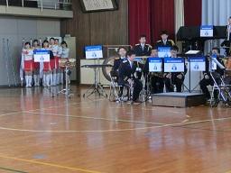 三階からの画像です。中学校長が終わりのあいさつをしました。そして校歌斉唱です。