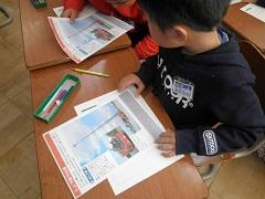 次は男の子4人の班です。自転車屋さんと時計屋さんを調べました。