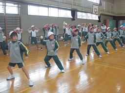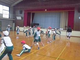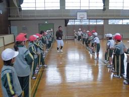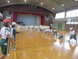 台風の影響で雨が降っていましたが、体育館の中で行いました。
