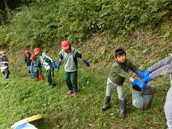 子供たちはそれらを見ながら泥出しの作業を手伝います。