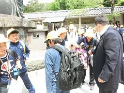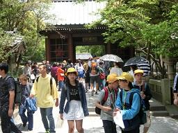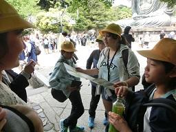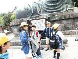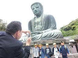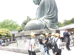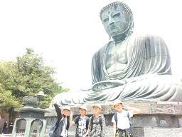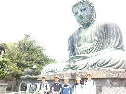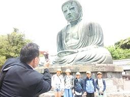 今回は1班の活動の様子をお伝えします。1班の予定は大仏様から銭洗弁財天と佐助稲荷神社の行く予定です。おやもう3班が先に来ていました。
