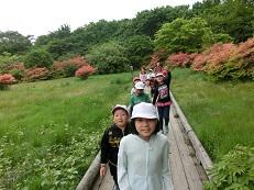 森が終わり、開けた場所に出ました。そこは木道が整備されていて、ツツジの名所です。