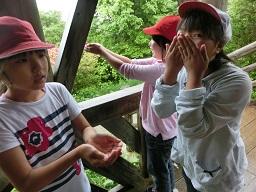 楽しいお昼の時間も終わり、雨がやんだので、次は自然の家の周りの散歩に出かけることにしました。