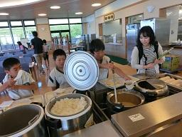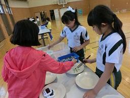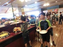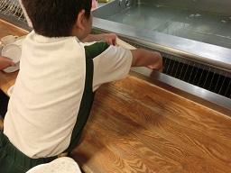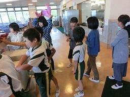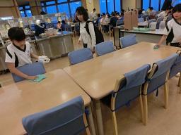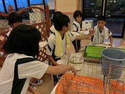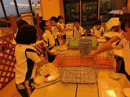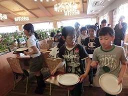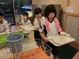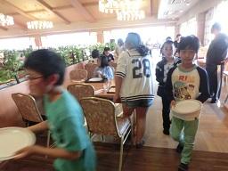 おいしい朝食も終わり、片付けに入ります。みんな自分で取った分は完食です。