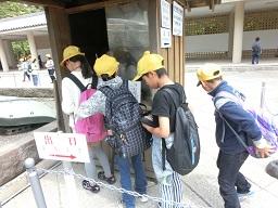 班別行動に出る前に相談しているようです。この班は大仏様の中に入りました。一人20円です。