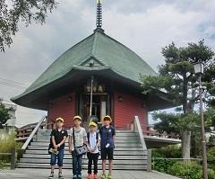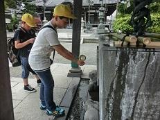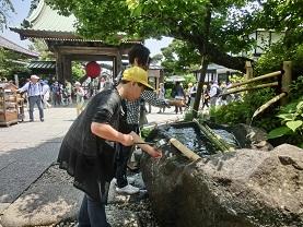 夷専堂という建物です。4人で撮りました。身を清めています。