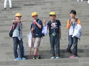 今年はもの電球のジュースが流行っていました。石段で記念撮影です。
