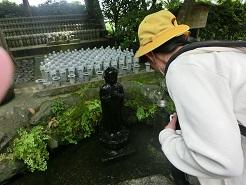 ここは竹林の出入り口付近です。かわいいお地蔵さんと一緒です。