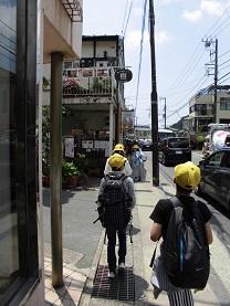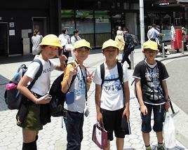 佐助稲荷神社から小町通りに来ました。5班の子もいました。鳩サブレーを買っています。