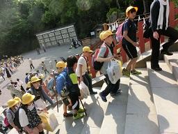 添乗員さんが指さす方に石段があり、そこを登ってお参りをします。