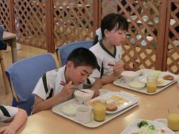 全員が席に着いたので朝食が始まります。「いただきます。」