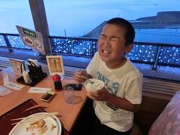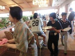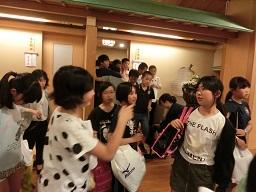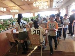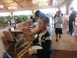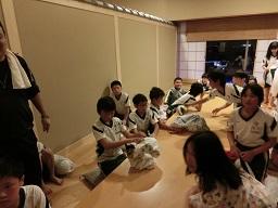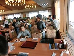 「冷てー」デザートのアイスを食べるOR君です。お腹一杯になったのでごちそうさまをして、控え室の荷物を取りに行きました。
