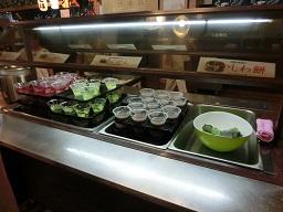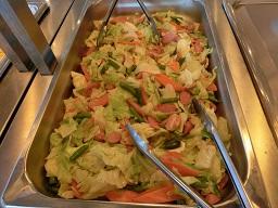 トレーとお皿、お箸をとります。最初は野菜のコーナーです。