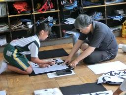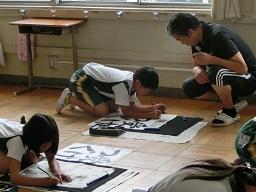 4年生は1時間目から3時間目まで習字を教えてもらいました。