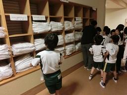 お風呂に行きました。これが脱衣鋤です。広いです。泉小学校の使うロッカー番号が書いてありました。