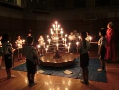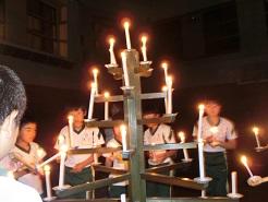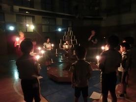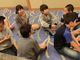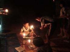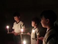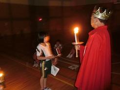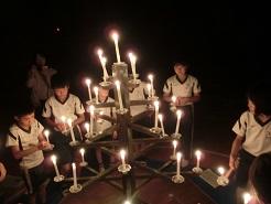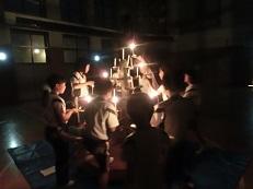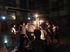 キャンドルファイヤーも終わり一日の終わりの時間です。班長会議を開きます。この日の反省事項をみんなに伝え、次の日の行動の参考にします。