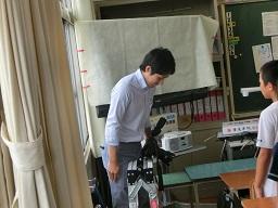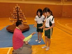 今チャレンジする種目の準備をしています。そして記録カードを先生からもらってやり方を聞いています。