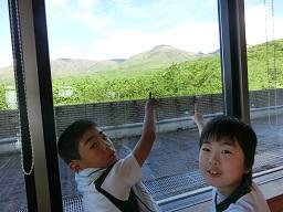 席に着くと「先生!」と叫ぶ方を見ると、きれいな山が見えました。茶臼岳です。くっきりと見えました。