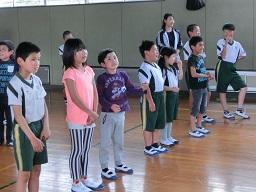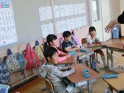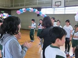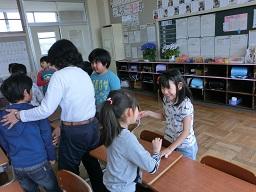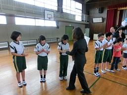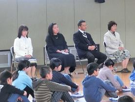 今日の5時間目に離任式を行いました。今日はご都合で4名の先生がお見えになり、子供たちとお別れをしました。