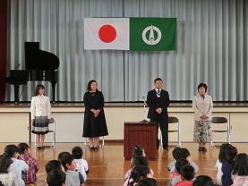 学校長の話の中で各先生方の紹介を子供たちに行いました。